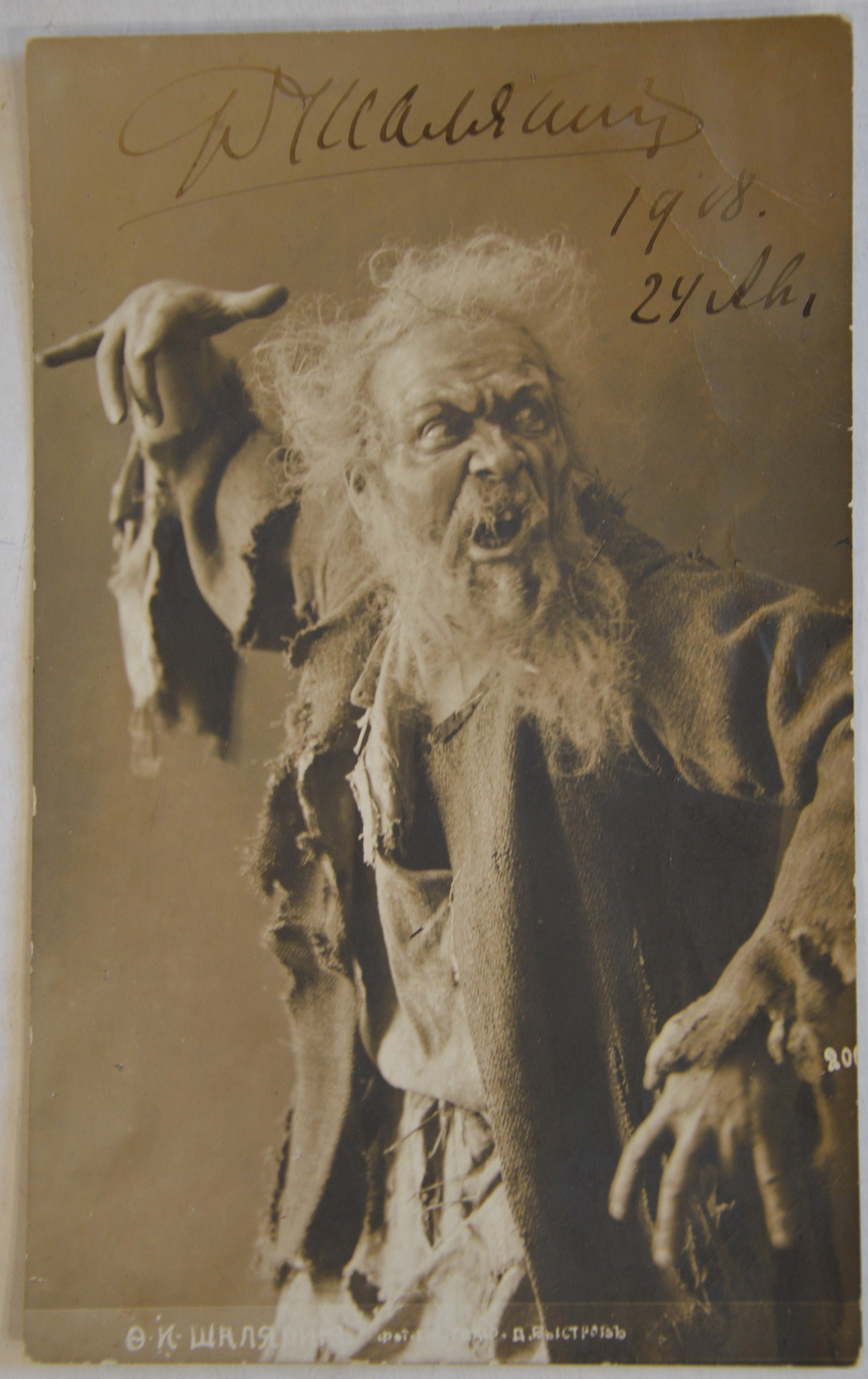 Открытка нач. ХХ в. Ф.И. Шаляпин в роли Мельника в опере А.С. Даргомыжского Русалка с автографом великого певца. Из фондов Вяземского историко-краеведческого музея