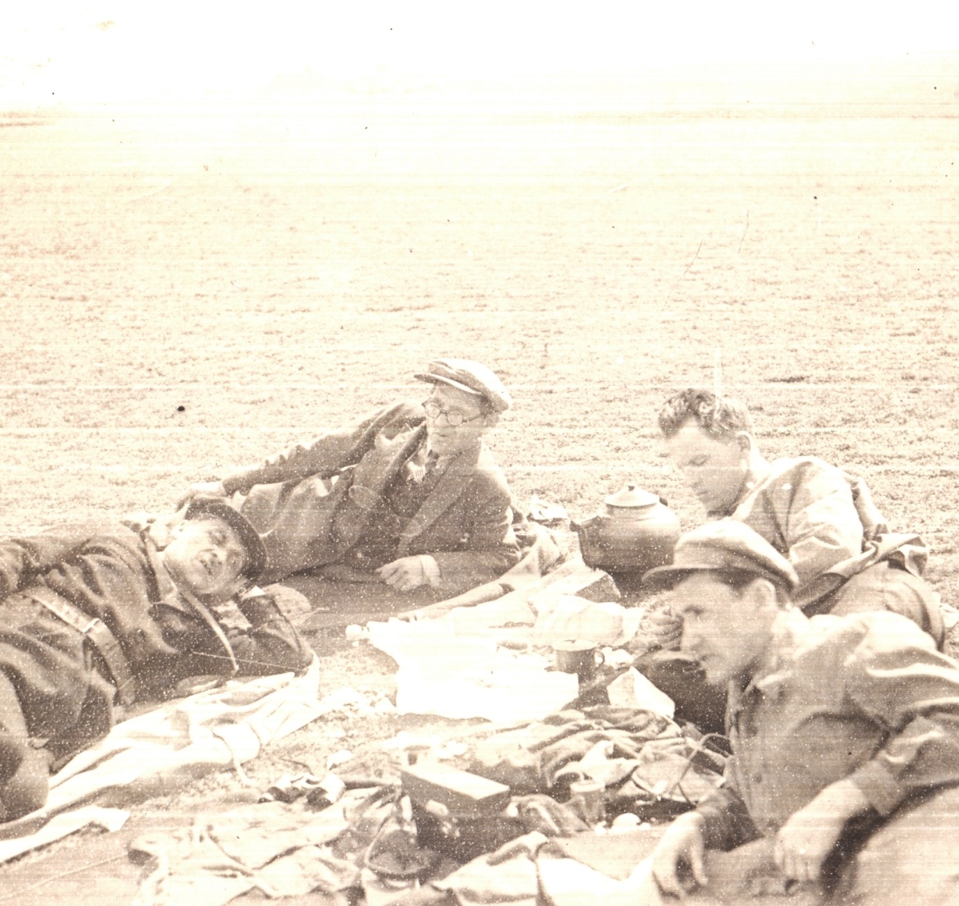 Археологи Саратовского университета П. С. Рыков, Н. К. Арзютов, И. В. Синицын на раскопках Покровских курганов. До 1937 г.