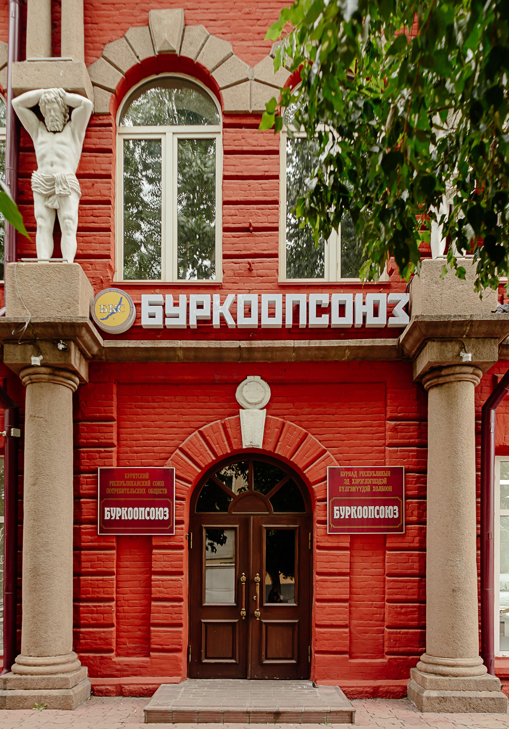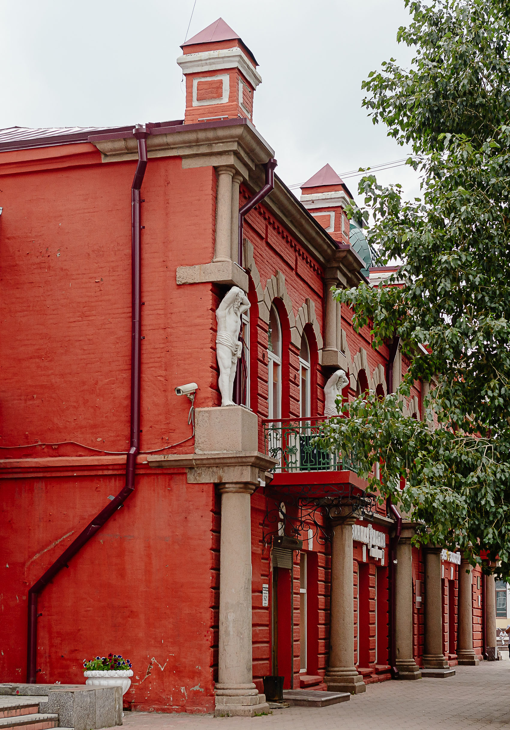 Дом на пешеходном участке улицы Ленина — образец эклектики начала XX века. Мощные фигуры атлантов, арочные окна, кованые балконы и рустовка создают образ столичной роскоши в сердце Верхнеудинска.