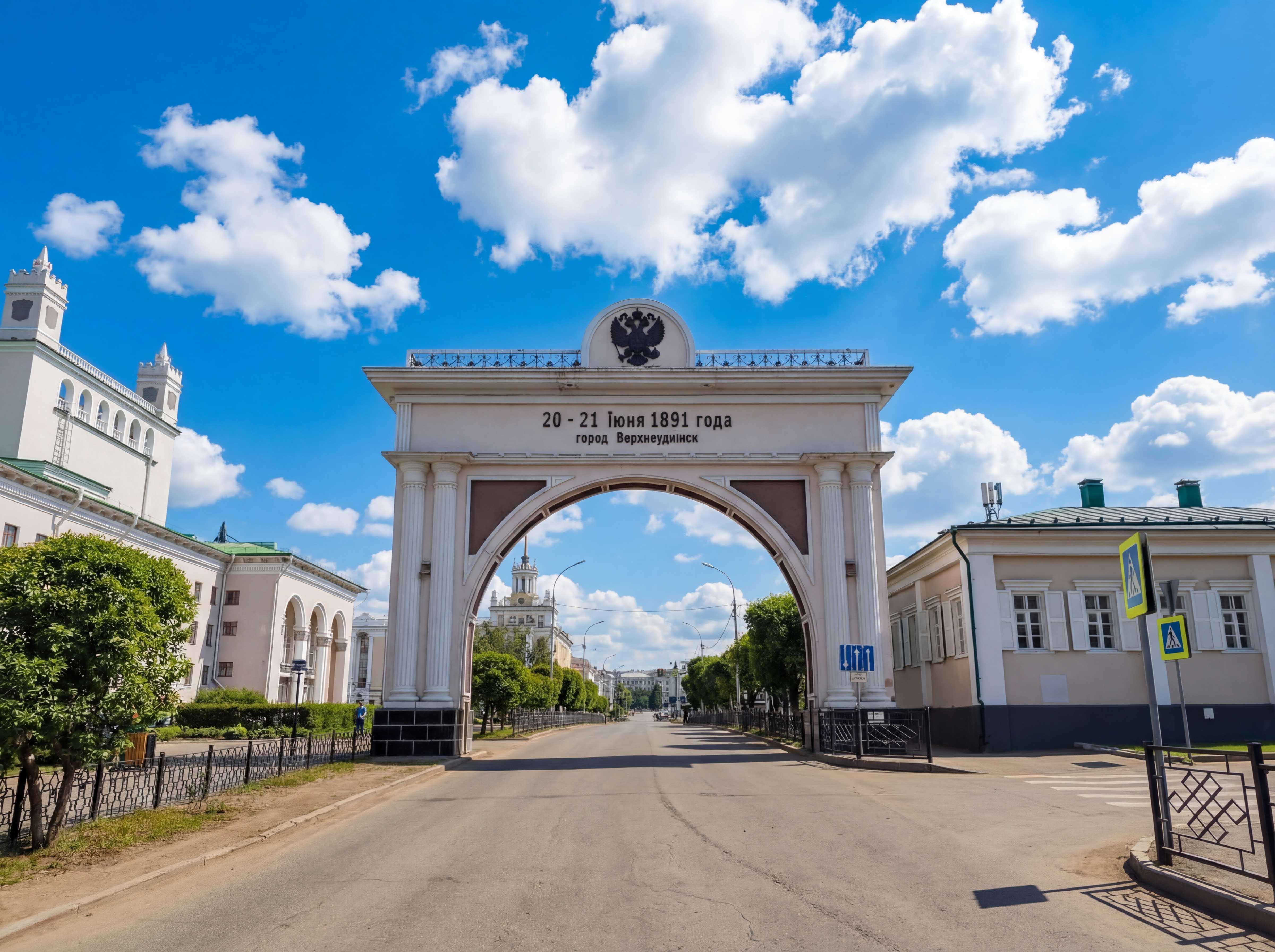 Далее следует идти по направлению к Одигитриевскому собору, который хорошо виден уже от здания театра. Спускаясь по улице Ленина к историческим кварталам, можно увидеть возвышающуюся над улицей Триумфальную арку, установленную в честь приезда в город в конце XIX века цесаревича Николая, будущего императора Николая II. Невдалеке находится памятник, посвящённый верхнеудинскому купцу. Монумент отдаёт дань уважения представителям этого сословия, столь много сделавшим для города в XIX — начале XX века.
