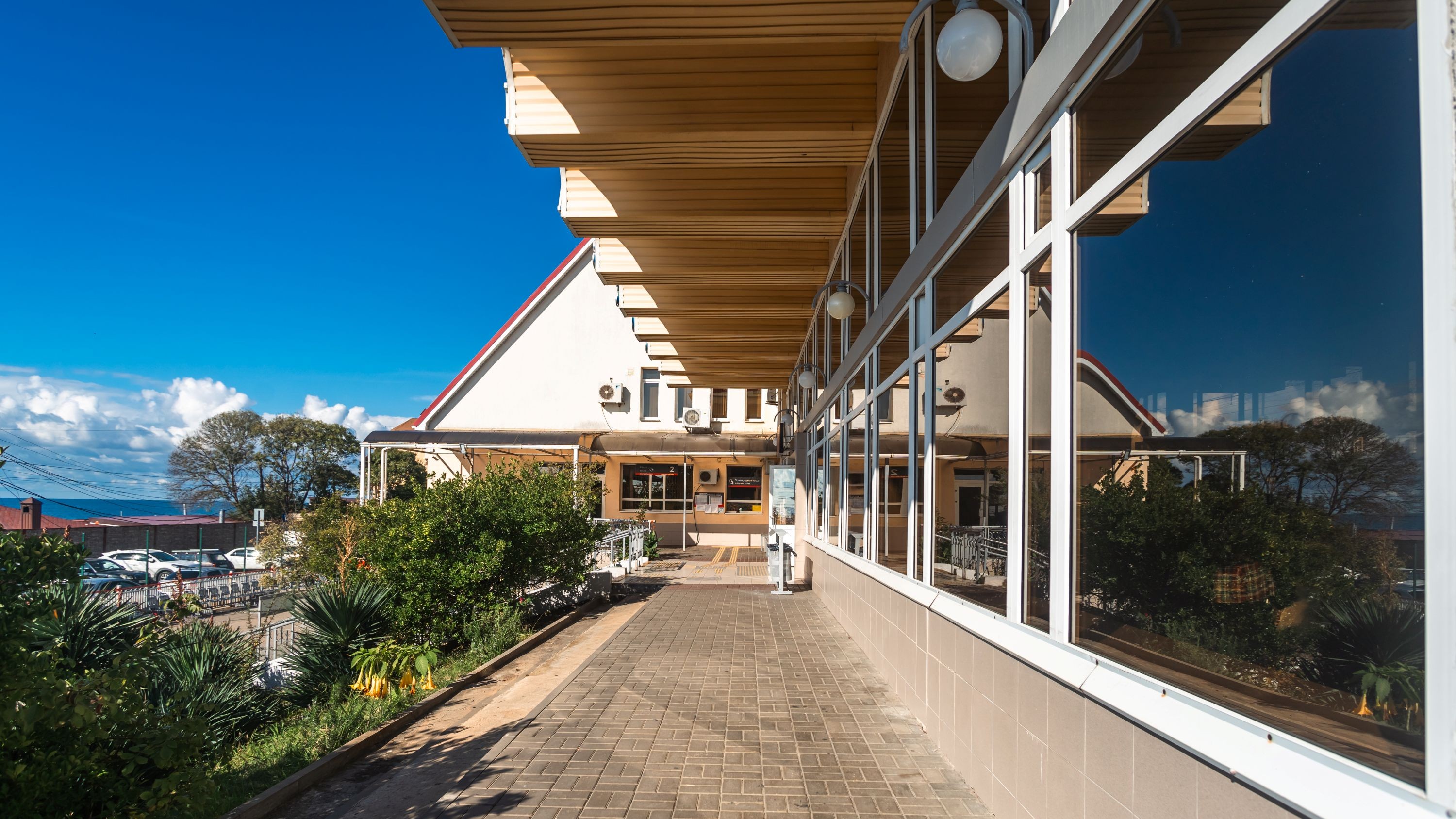 Станция находится всего в 50 метрах от моря, и из окон вокзала можно любоваться на бескрайнюю синюю даль. Несколько лет назад в Лоо построили новую набережную, по которой можно прогуляться, пока ждешь поезд. На станции останавливаются пригородные электрички до Туапсе, аэропорта Сочи, поселка Лазаревское, а также поезда дальнего следования из самых отдаленных уголков страны.