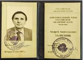 Удостоверение №897 дейсвительного члена Российской академика Зализняка Андрея Анатольевича. 1997 г. © Новгородский музей-заповедник, Великий Новгород