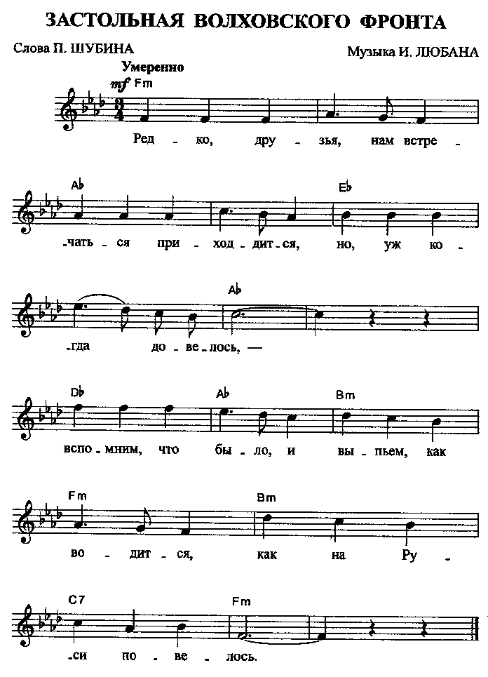 Впоследствии Павел Шубин участвовал и в освобождении Новгорода, а в 1945 году отправился воевать на Дальний Восток. Тогда он сочинил новые слова на мотив известного вальса «На сопках Маньчжурии». И всё же главным его творением стала «Волховская застольная» — песня, столь полюбившаяся ветеранам войны.