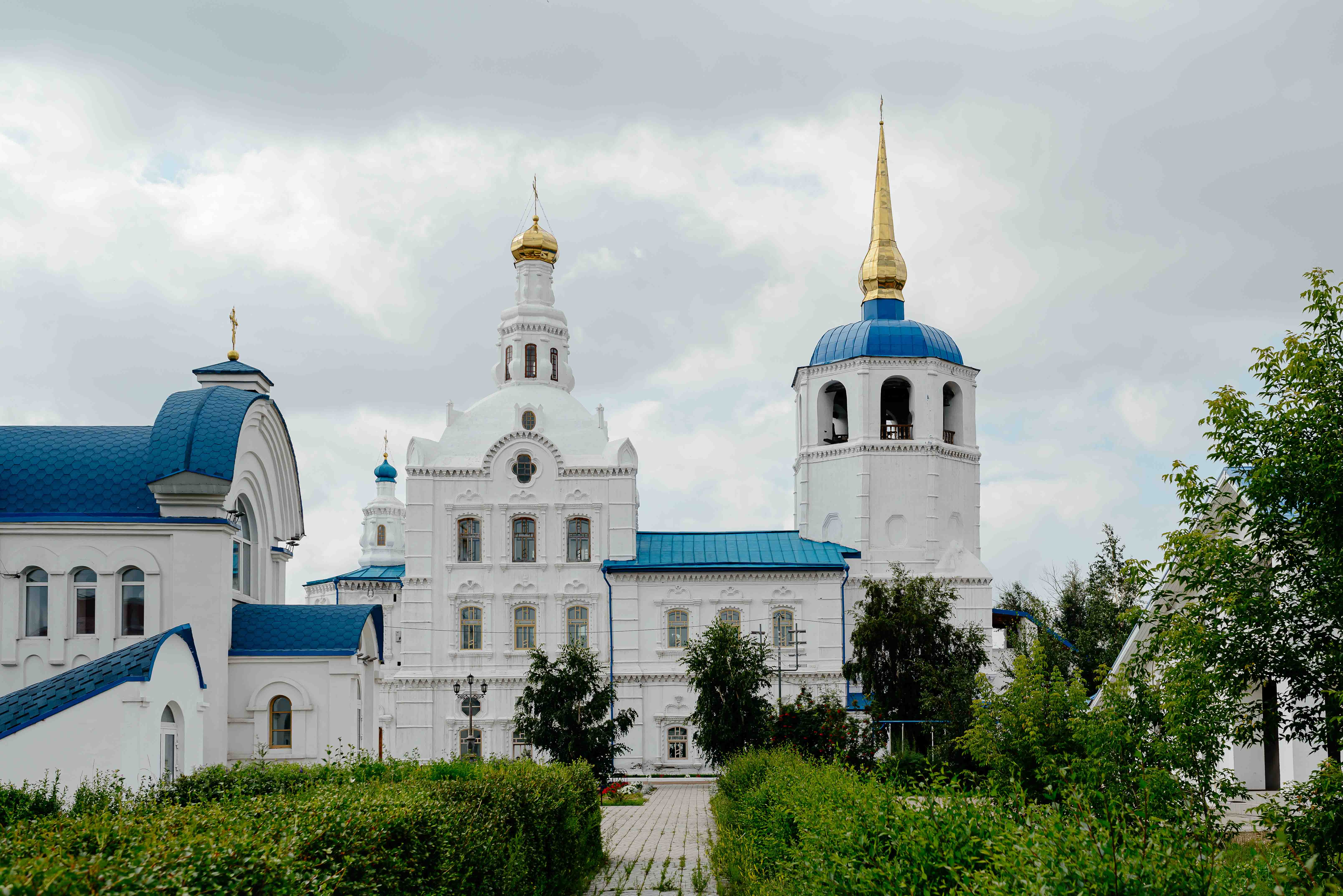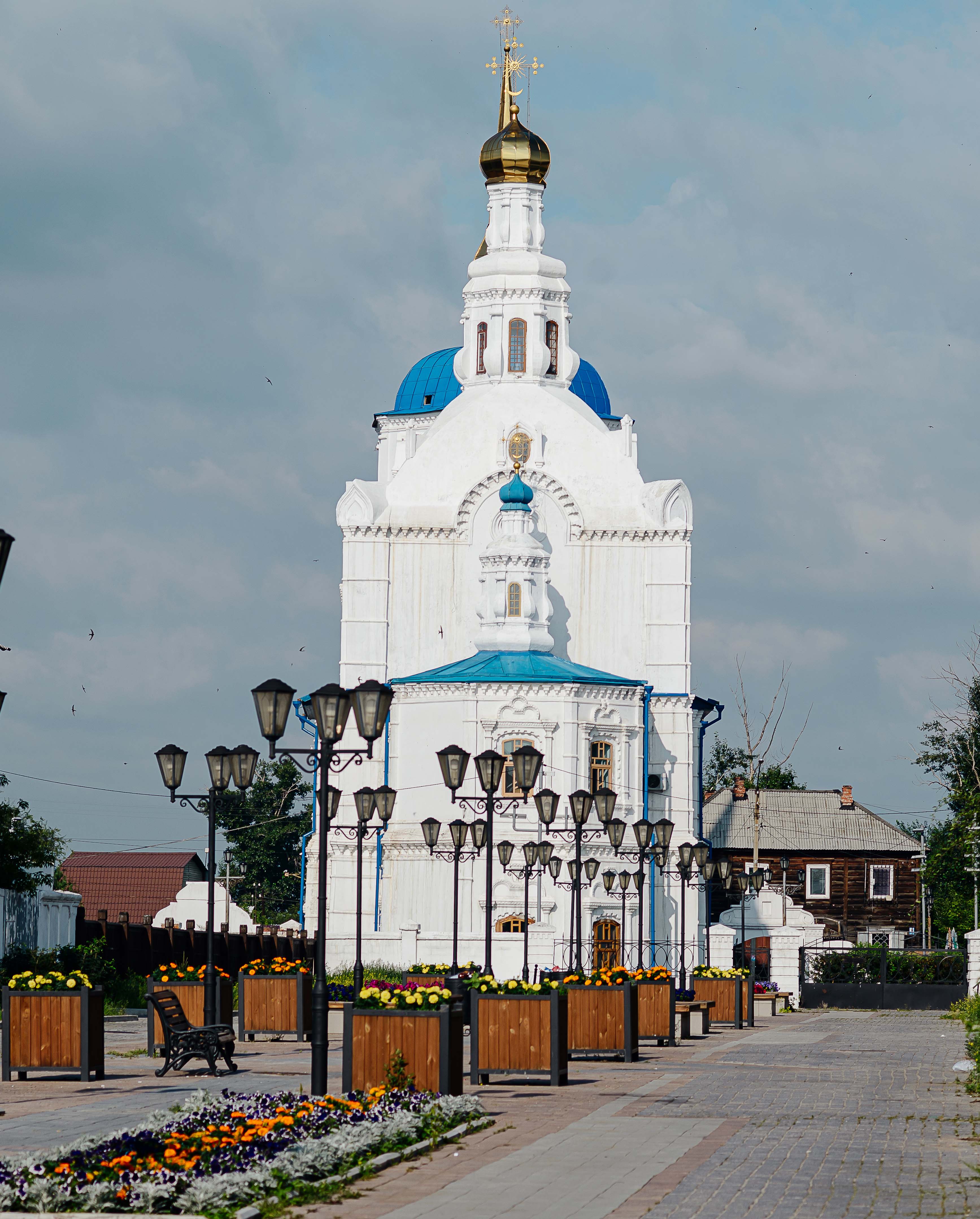 Первое каменное здание Улан-Удэ, возводившееся почти полвека. Собор пережил закрытие, был превращён в антирелигиозный музей, но сегодня его золотые купола вновь сияют над городом.